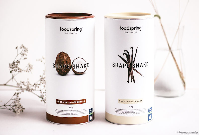 On commence par un des produits phare de la marque Foodspring avec son Shape Shake ! J’ai choisi les goûts vanille et coco crisp mais vous avez le choix parmi 11 saveurs au total et ça c’est vraiment bien !